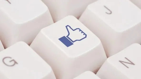 Computer keyboard close up with Facebook Like Thumbs up on a key