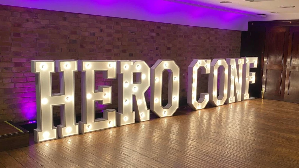 Hero Conf written in large light display