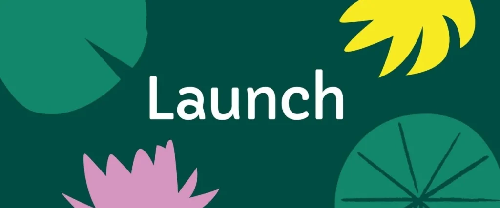 Launch Online Logo on a background with lilly pads